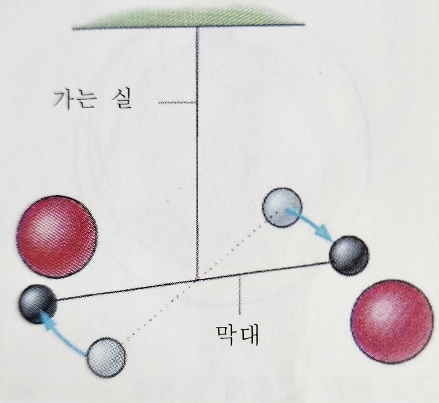 실에 비틀림을 일으켰다. 실의 성질을 알고 있으므로 Cavendish는 이 힘을