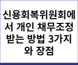 여기까지 신용회복위원회에서 개인 채무조정 받는 방법 3가지와 장점에 대해서 알아봤습니다.